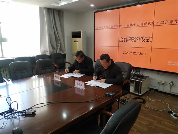 榆林黃土地現代農業綜合開發有限公司為了能在“十四五”有長足高質量發展,同時也為佳縣乃至榆林引入優質科技、專家資源,在經歷了前期多次溝通、洽談后,2020年12月24日上午,公司與陜西省生物農業研究所在線舉行了正式的戰略合作協議簽約儀式。