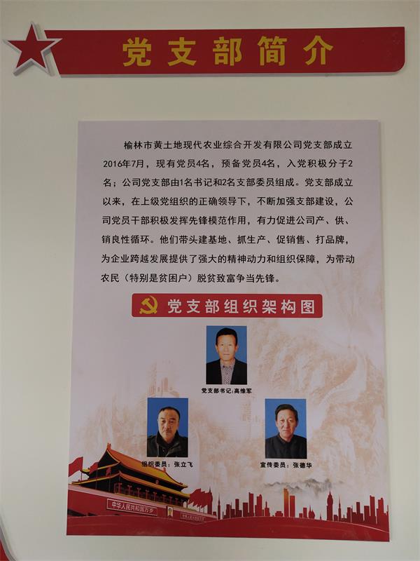 榆林市黃土地現代農業綜合開發有限公司位于佳縣王家砭鎮,成立于2012年,注冊資金1000萬元。是一家以農業種植,農民技能培訓,農產品研發、生產、銷售為主要業務的民營企業。公司現有員工50余人,其中共產黨員4人。技術開發依靠西北農林科技大學食品工程學院、陜西師范大學食品科學和營養工程學院提供。公司現有雜糧種植基地7000余畝,苦菜采集基地58000余畝,擁有苦菜加工區,雜糧掛面加工區兩個生產廠區,農民培訓中心,倉儲物流中心和產品研發中心等三個中心。現上市的產品主要有山野苦菜,雜糧,掛面,紅棗等四個系列共計20余個品種,產品銷往全國各地,年產值已突破3000萬元。